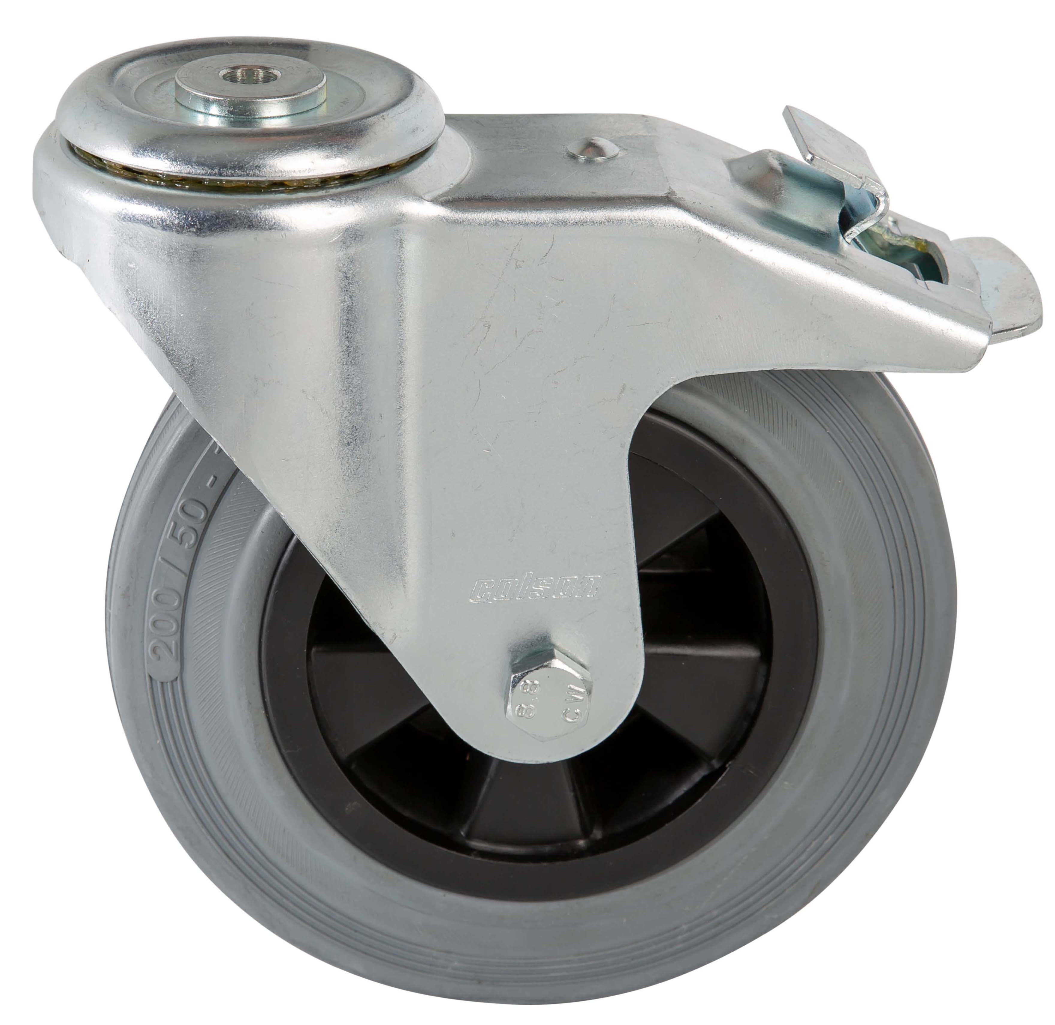 - Polypropyleene wheel with grey rubber tyre (Shore A 85) and roller bearing