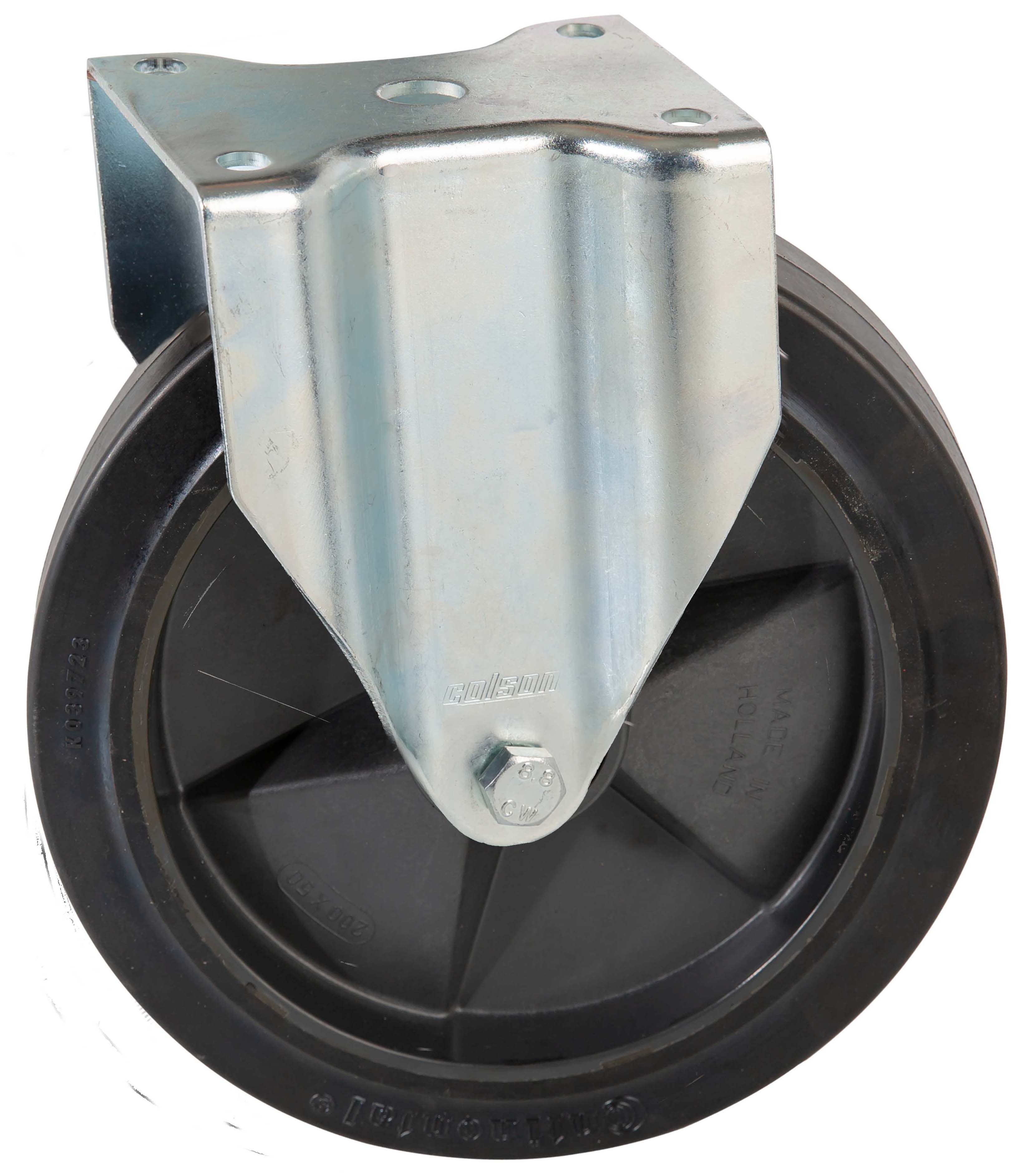 - Glasfaserverstärkter Polyamid-Radkörper mit schwarzer Gummibereifung (Shore A 65) und zwei Präzisionskugellager