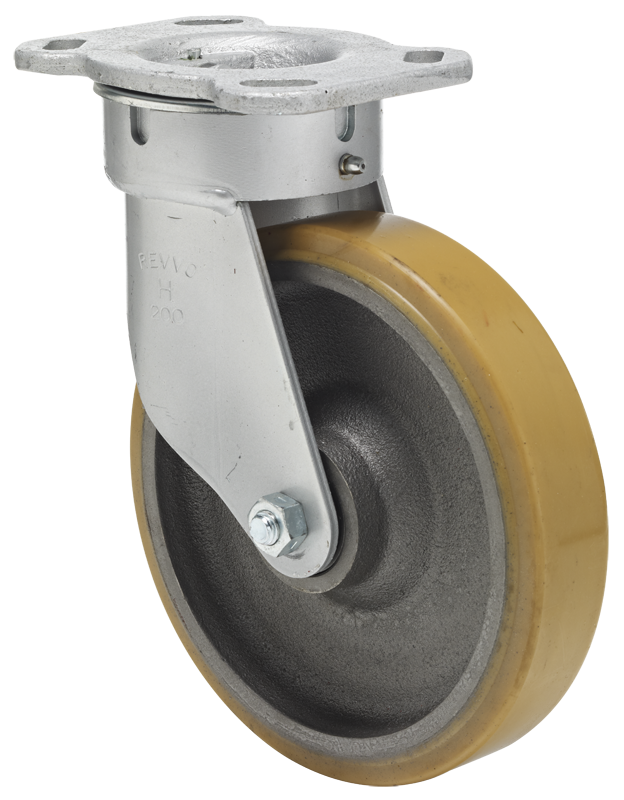 - Gußrad mit aufvulkanisierter Vulkollanbereifung (Shore A 92) und zwei Präzisionskugellagern