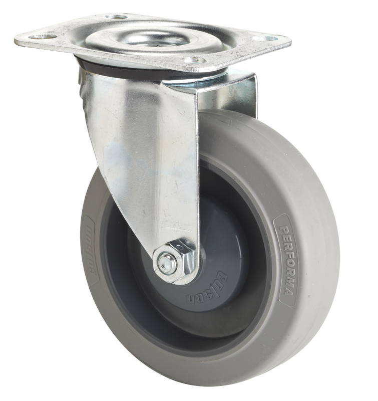 - Dark grey Polypropyleene wheel with grey rubber tyre