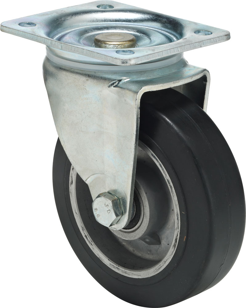 - Swivel fork of deep drawn zinc-coated steel Swivel bearing with double ball raceways and sealring an extra sturdy