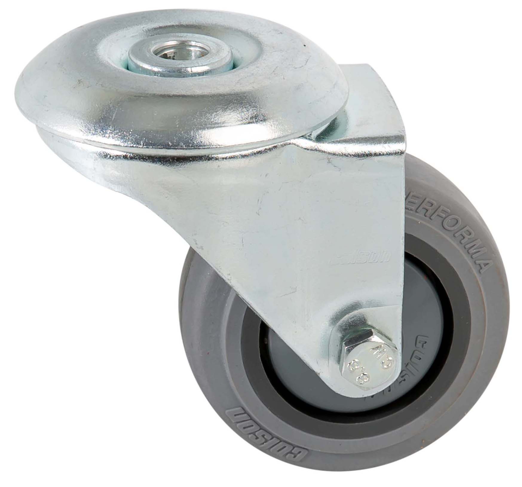 - Polypropylen-Radkörper mit grauer thermoplastischer Gummibereifung (Performa - Shore A 65-70) und einem abgedichteten Präzisionskugellager