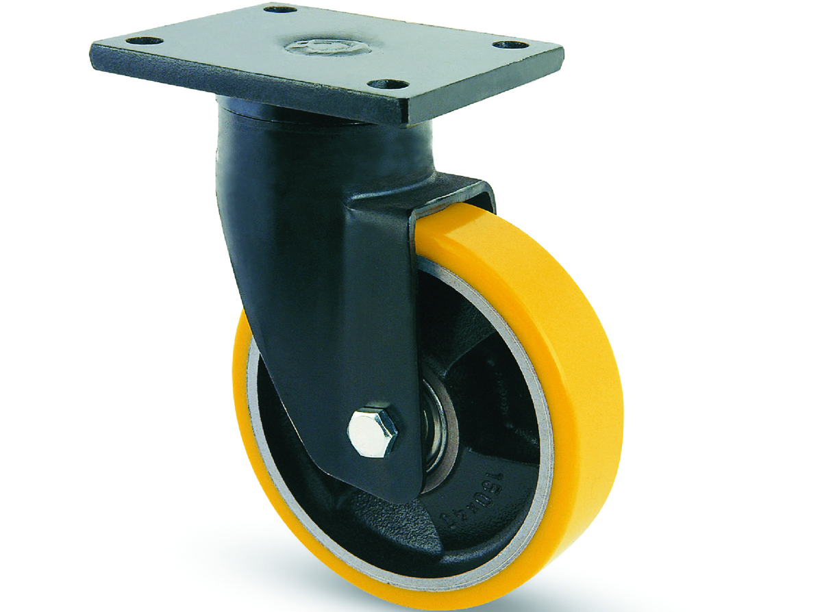- Wheels with a cast iron centre and Colson Thane 93° Shore A tyre and two deep groove ball bearings
