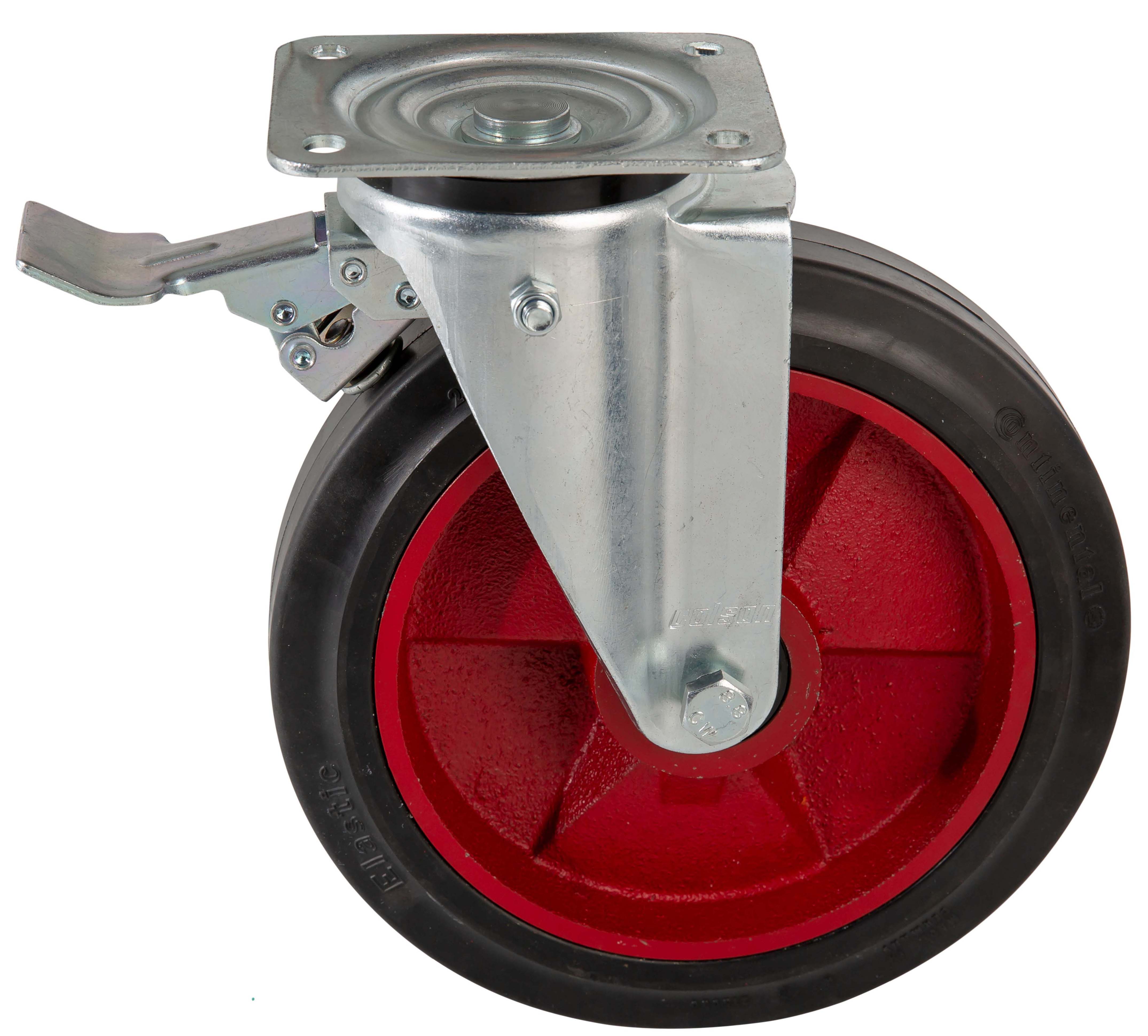 - Cast iron wheel with pressed-on full-elastic rubber tyre