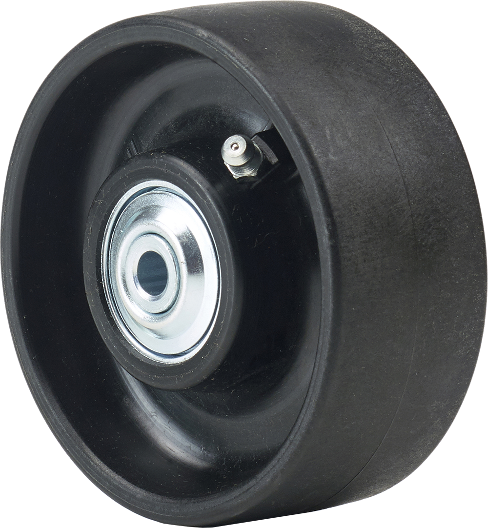 - Cast iron wheel with bonded-on Vulkollan tyre (Shore A 92) with two ball bearings
