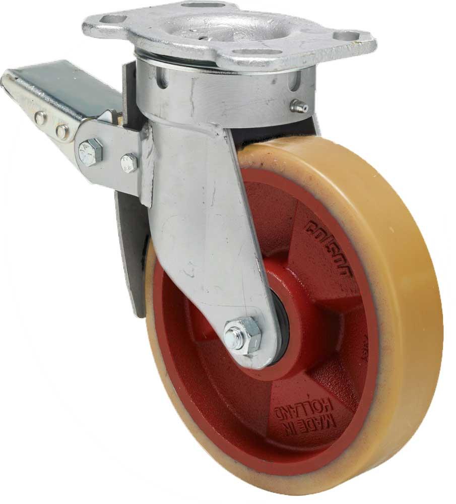 - Gußrad mit aufvulkanisierter Vulkollanbereifung (Shore A 92) und zwei Präzisionskugellagern