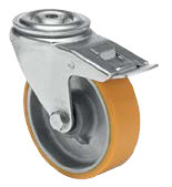 - Aluminium wheels with bonded-on round polyurethane tyre (Shore A 92) with two deep groove ball bearings and steel collar bushes external diameter 15/20/25 mm to internal 8/10/12 mm. Operating temperatures from -20°C to + 80°C