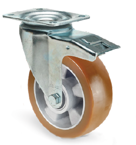 - Aluminium wheels with bonded-on round polyurethane tyre (Shore A 92) with two deep groove ball bearings and steel collar bushes external diameter 15/20/25 mm to internal 8/10/12 mm. Operating temperatures from -20°C to + 80°C