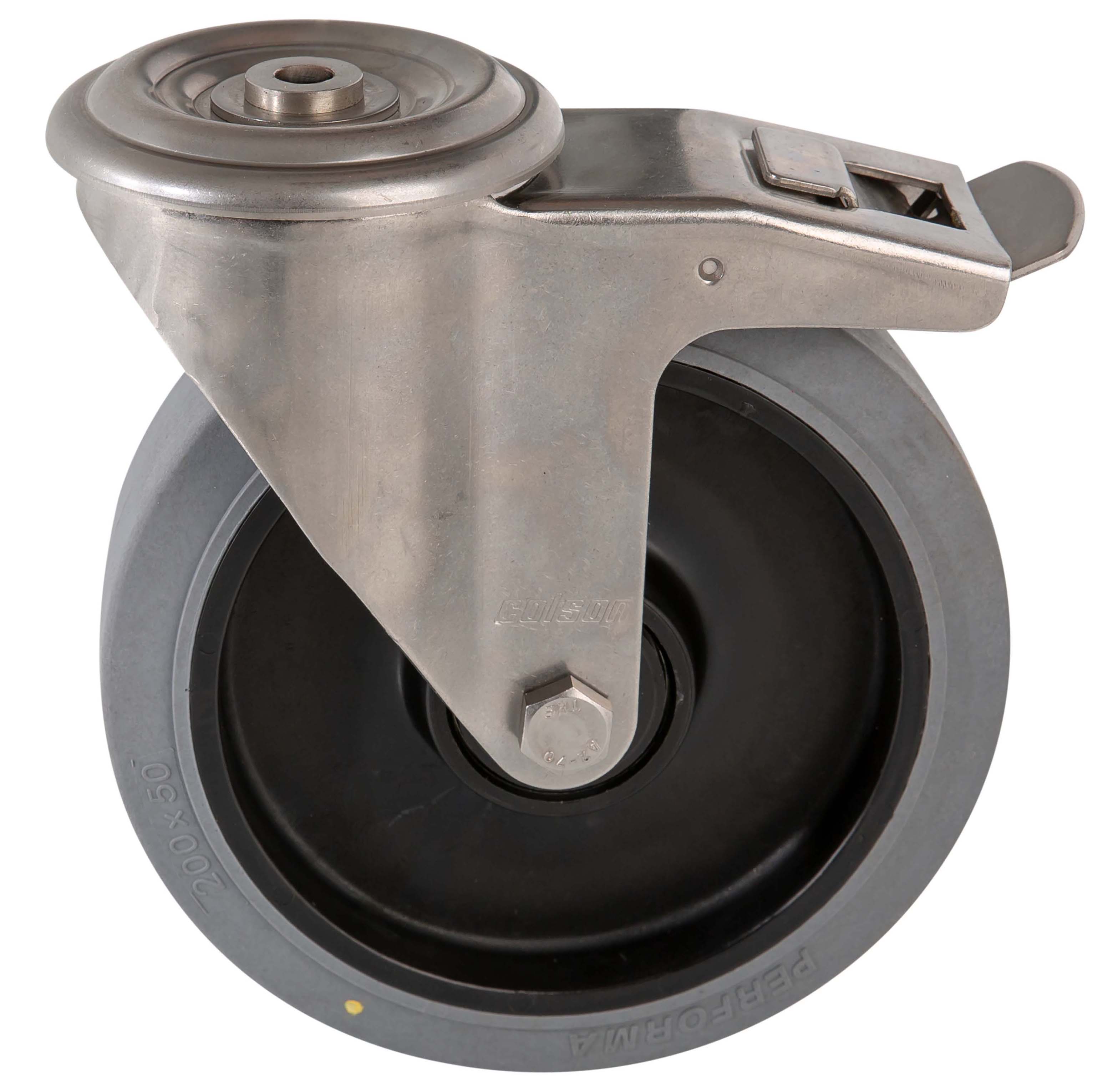 - Polyamid-Rad mit schwarzer elektrisch-leitfähiger Gummibereifung (Shore A 82)und einem abgedichteten Präzisionskugellager