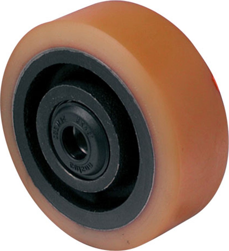 - Gußrad mit aufvulkanisierter Vulkollanbereifung (Shore A 92) und zwei Präzisionskugellagern