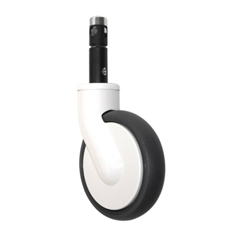 - thermoplastic polyurethane tyre (TPU) iron grey RAL 7011, Shore A 95 plastic wheel centre and plastic thread guard, silver grey RAL 7001 precision ball bearing