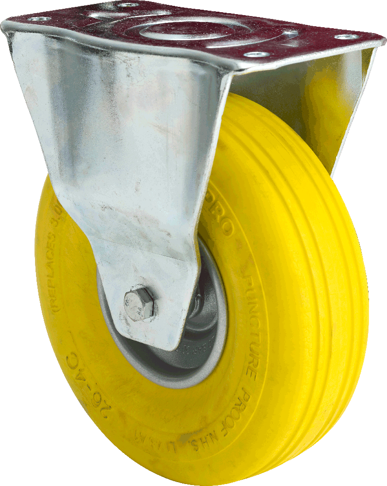 - Rad mit pannensicheren, gelben Polyurethanreifen