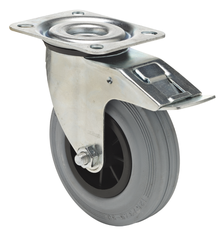 Swivel castor with total brake mounted behind, 80 mm - 200 mm, 50 kg - 200 kg