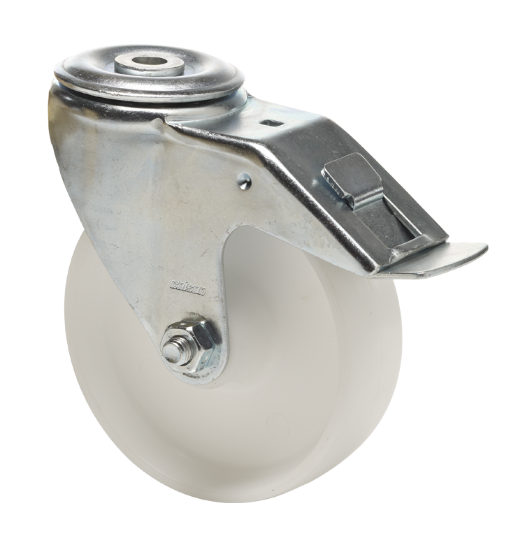 Swivel castor with total brake mounted behind, 80 mm - 200 mm, 150 kg - 350 kg