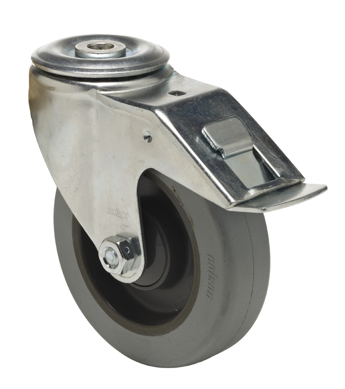 Swivel castor with total brake mounted behind, 80 mm - 200 mm, 150 kg - 380 kg