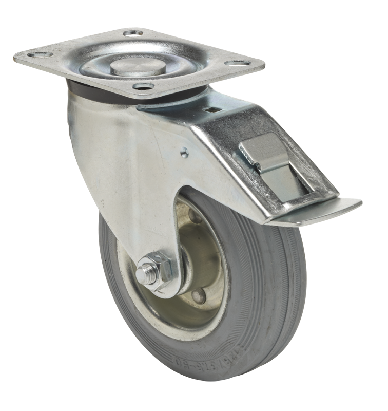 Swivel castor with total brake mounted behind, 80 mm - 200 mm, 50 kg - 200 kg
