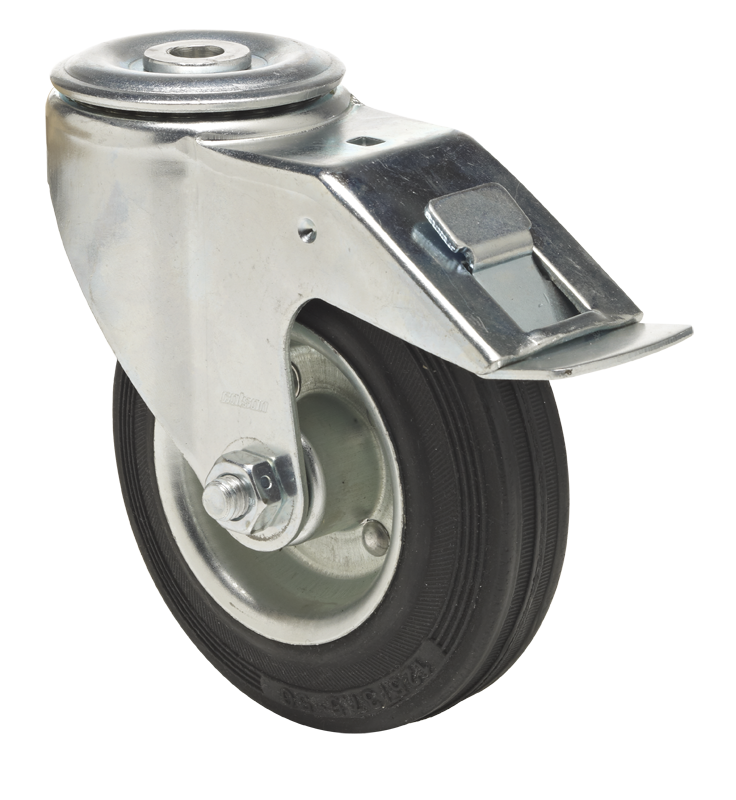 Swivel castor with total brake mounted behind, 80 mm - 200 mm, 50 kg - 160 kg