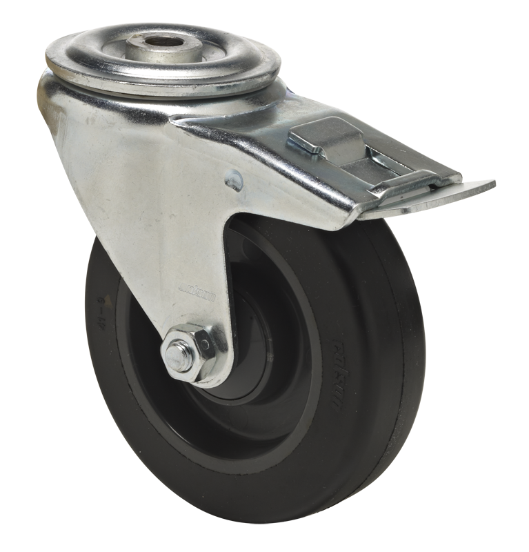 Swivel castor with total brake mounted behind, 80 mm - 125 mm, 150 kg - 200 kg