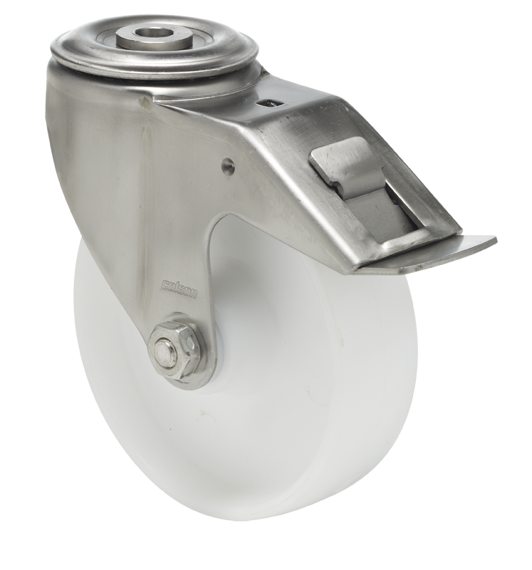 Swivel castor with total brake mounted behind, 80 mm - 125 mm, 150 kg
