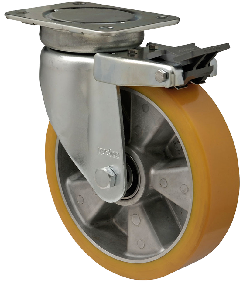 Swivel castor with wheel locking brake, 200 mm, 800 kg