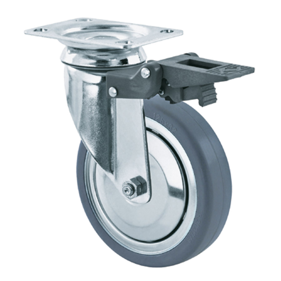 Swivel castor with total brake mounted behind, 80 mm - 200 mm, 80 kg - 110 kg