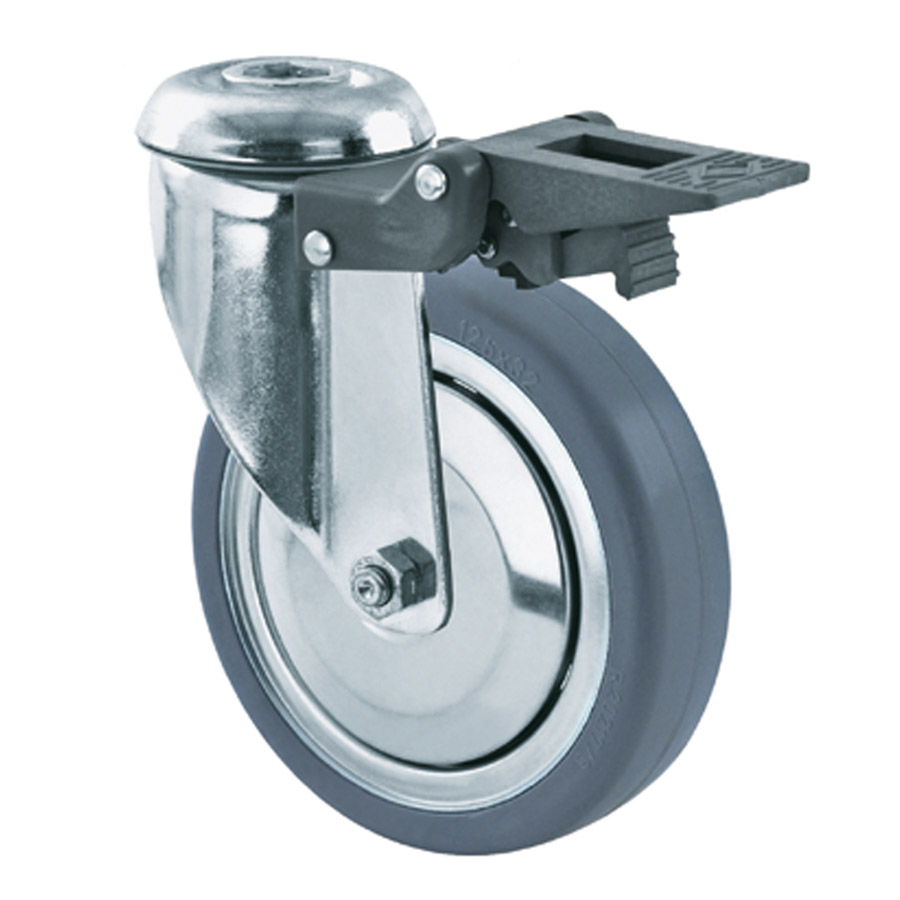 Swivel castor with total brake mounted behind, 80 mm - 200 mm, 80 kg - 120 kg
