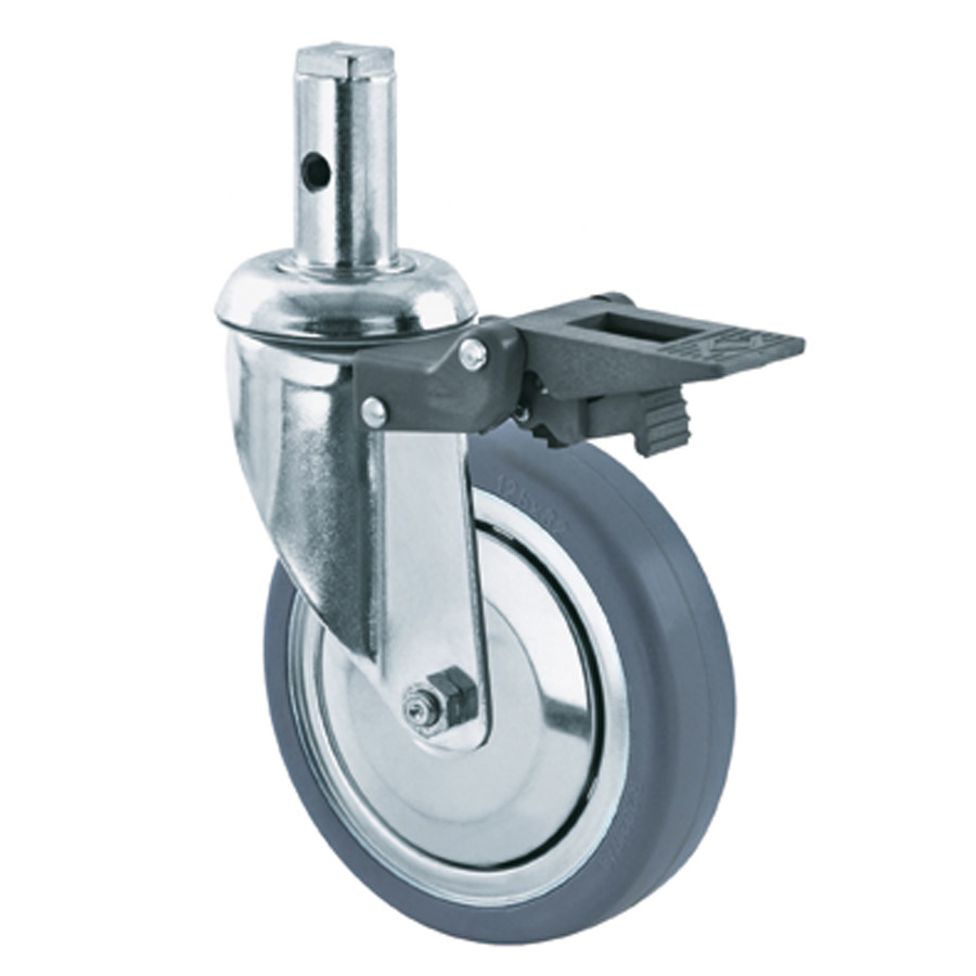 Swivel castor with total brake mounted behind, 80 mm - 200 mm, 80 kg - 120 kg