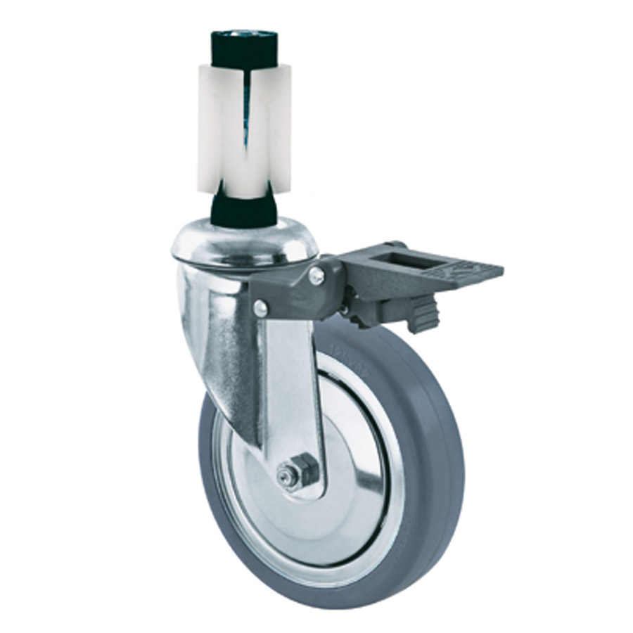 Swivel castor with total brake mounted behind, 80 mm - 200 mm, 80 kg - 120 kg