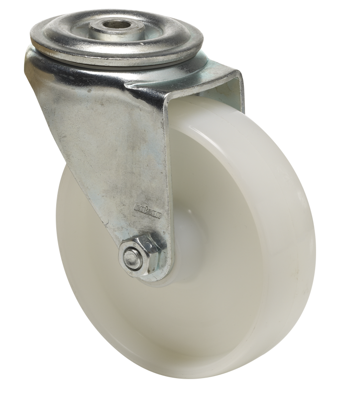 - Swivel fork of deep drawn zinc-coated steel Swivel bearing with double ball raceways and sealring an extra sturdy