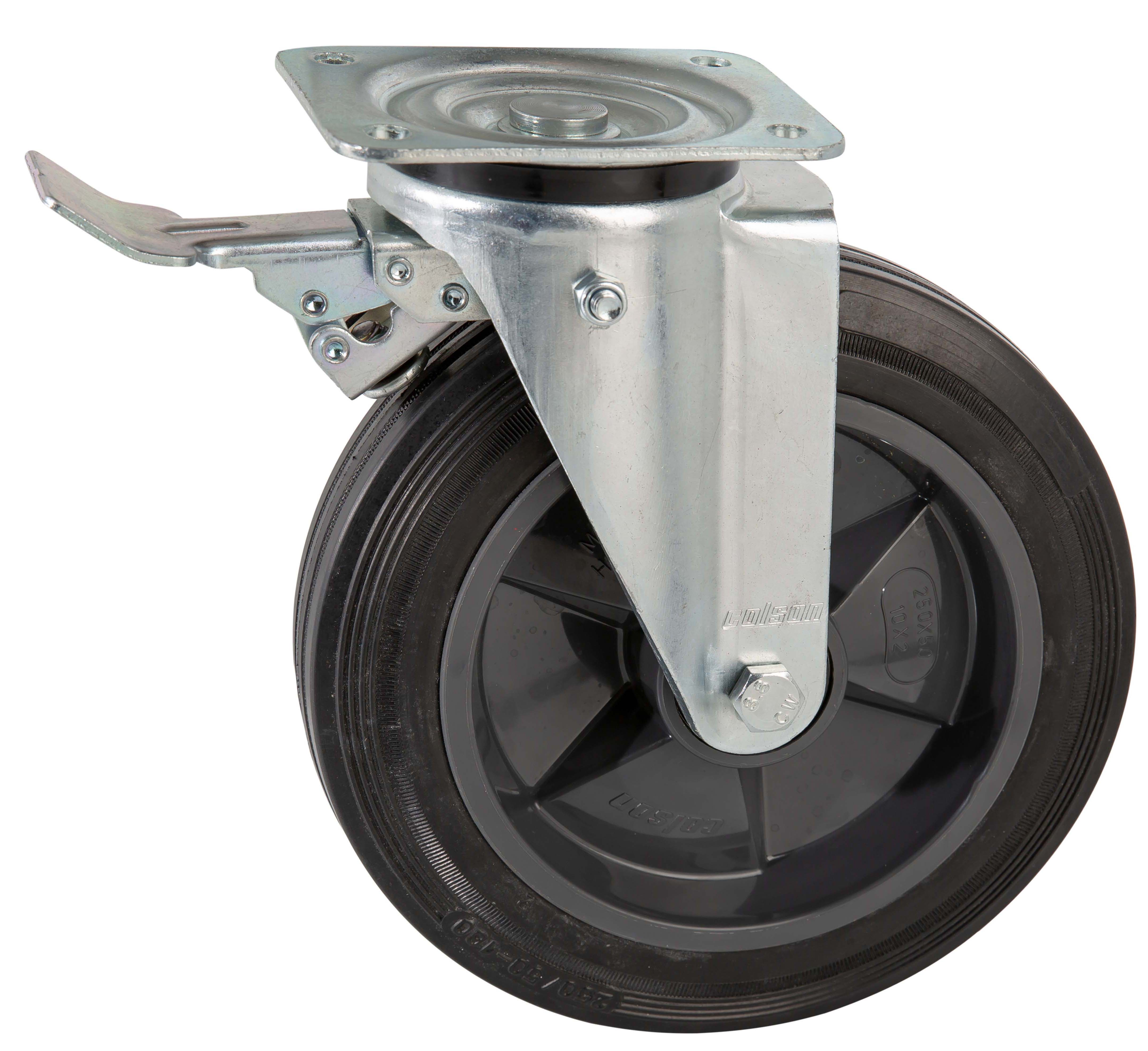 Swivel castor with total brake mounted in front, 250 mm, 340 kg