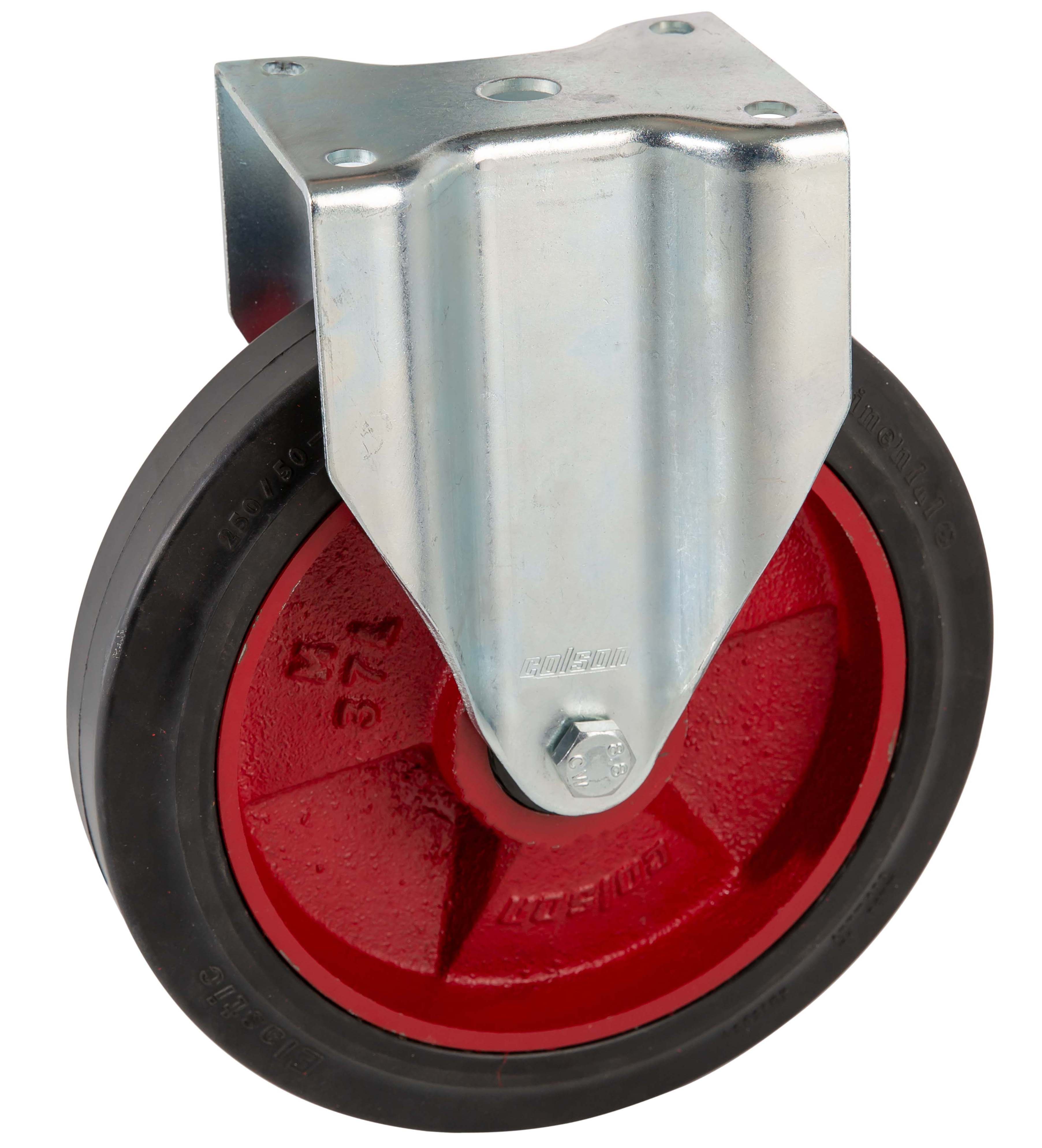 - Cast iron wheel with pressed-on full-elastic rubber tyre