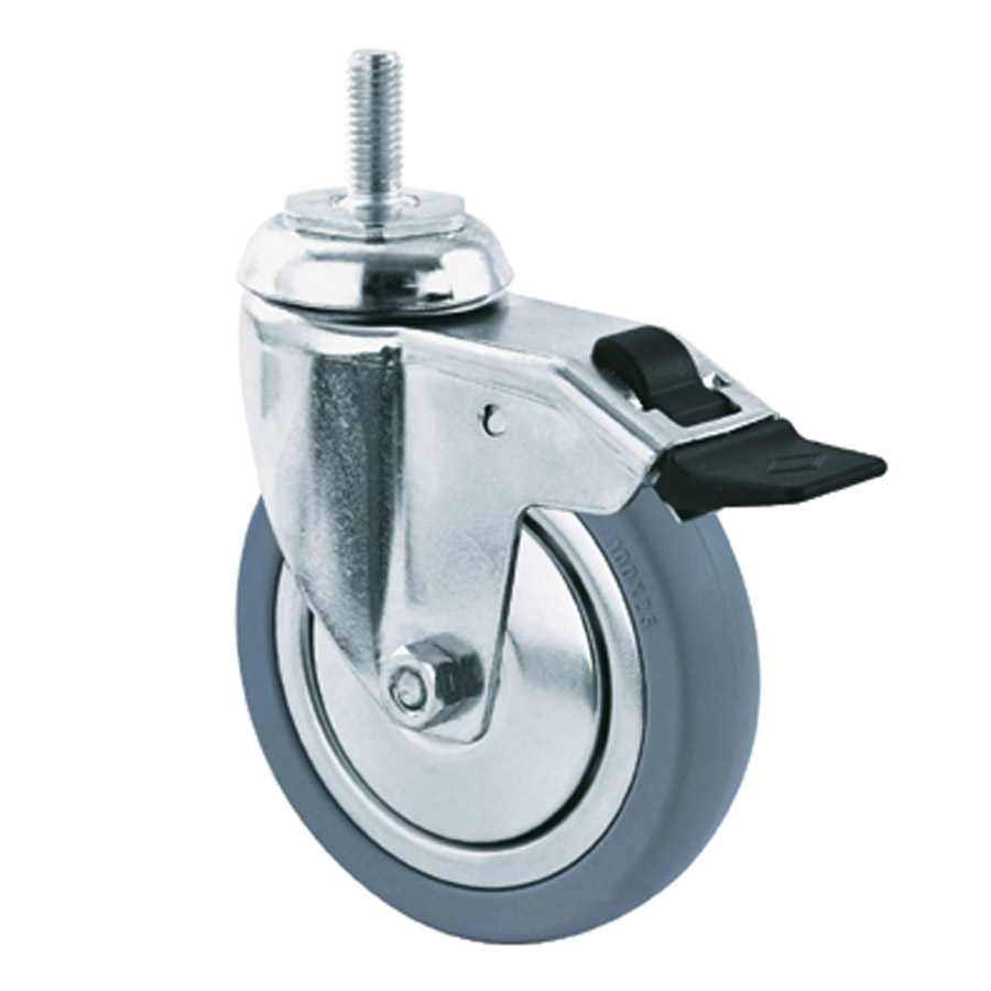Swivel castor with total brake mounted behind, 100 mm, 65 kg