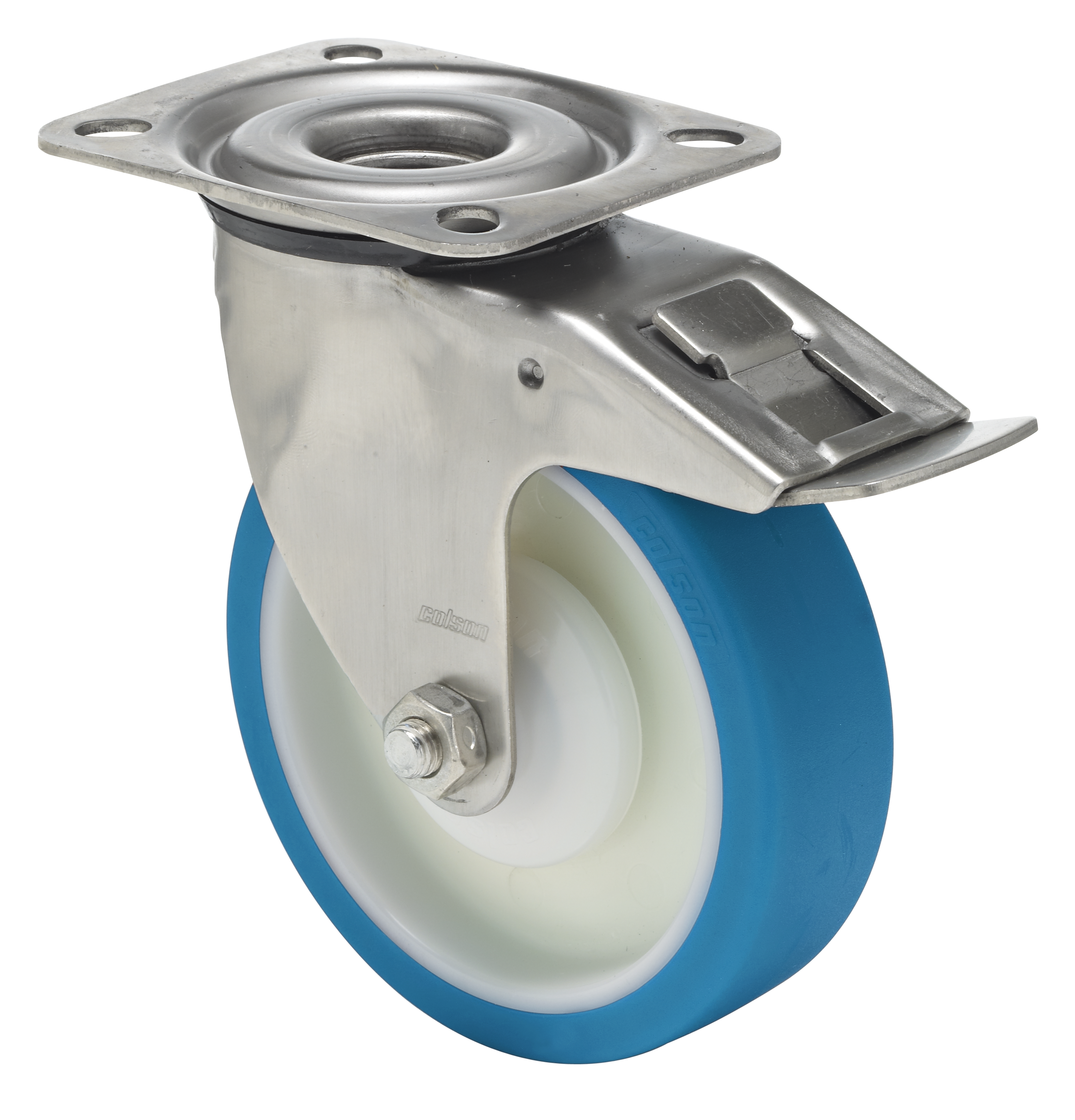 Swivel castor with total brake mounted behind, 80 mm - 125 mm, 180 kg - 150 kg