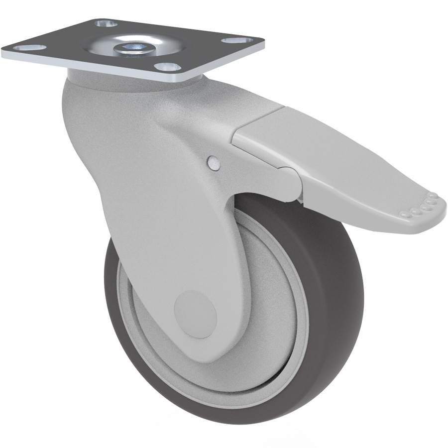 Swivel castor with total brake mounted behind, 75 mm - 125 mm, 70 kg - 100 kg