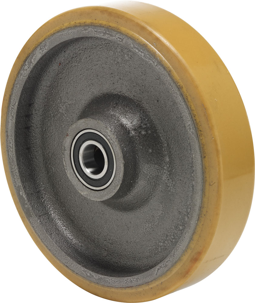 Wheels with a cast iron centre and Colson Thane 93° Shore A tyre and two deep groove ball bearings
