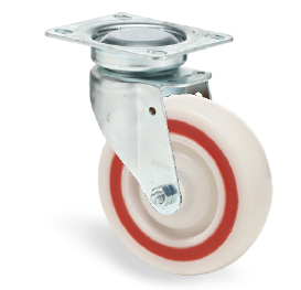 - Swivel fork of deep drawn zinc-coated steel Swivelhead with sealed precision ball bearing and a grease nippel
