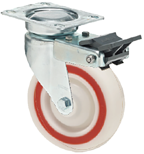 - Swivel fork of deep drawn zinc-coated steel Swivelhead with sealed precision ball bearing and a grease nippel