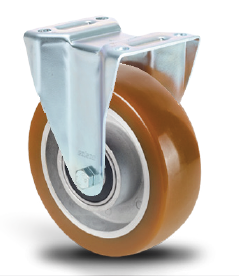 - Aluminium wheels with bonded-on round polyurethane tyre (Shore A 92) with two deep groove ball bearings and steel collar bushes external diameter 15/20/25 mm to internal 8/10/12 mm. Operating temperatures from -20°C to + 80°C