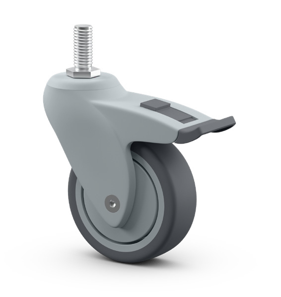 Swivel castor with wheel locking brake, 75 mm, 70 kg