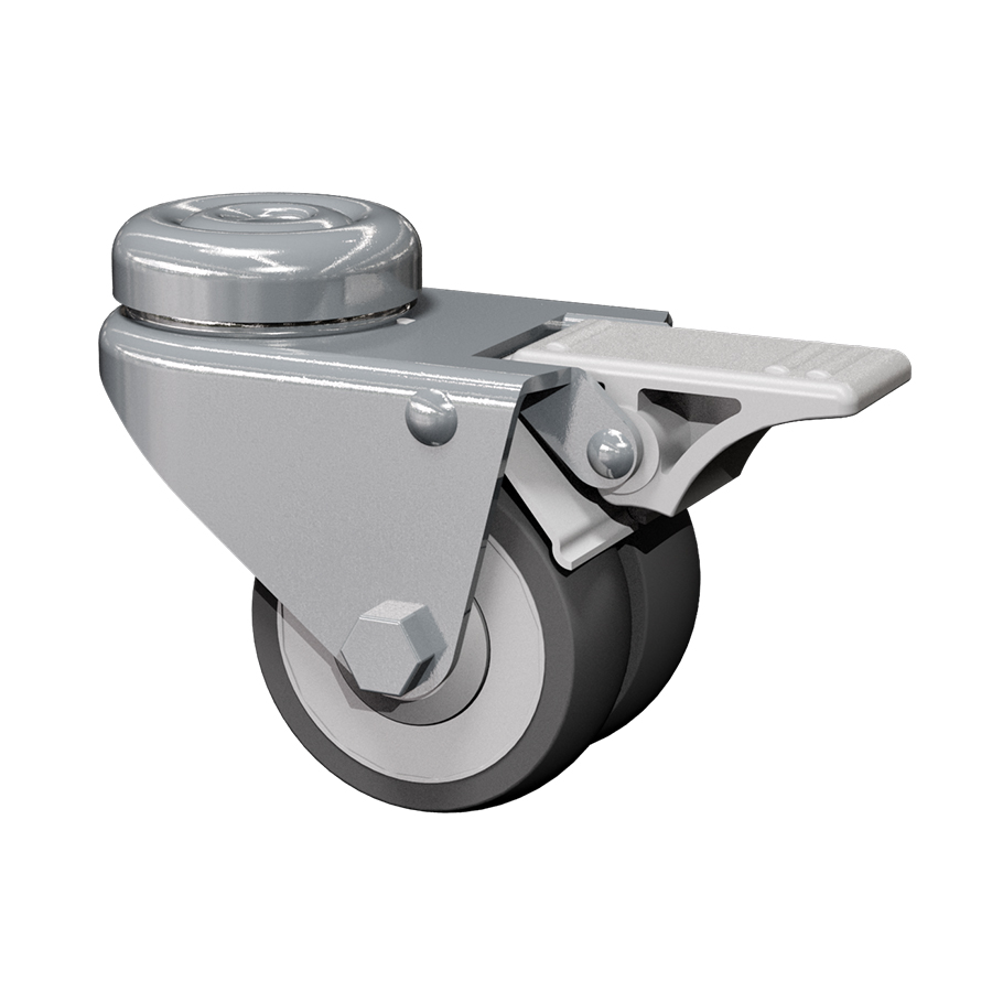 Swivel castor with total brake mounted behind, 50 mm, 60 kg
