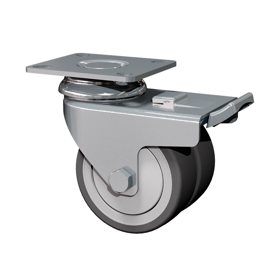 Swivel castor with total brake mounted behind, 75 mm, 100 kg