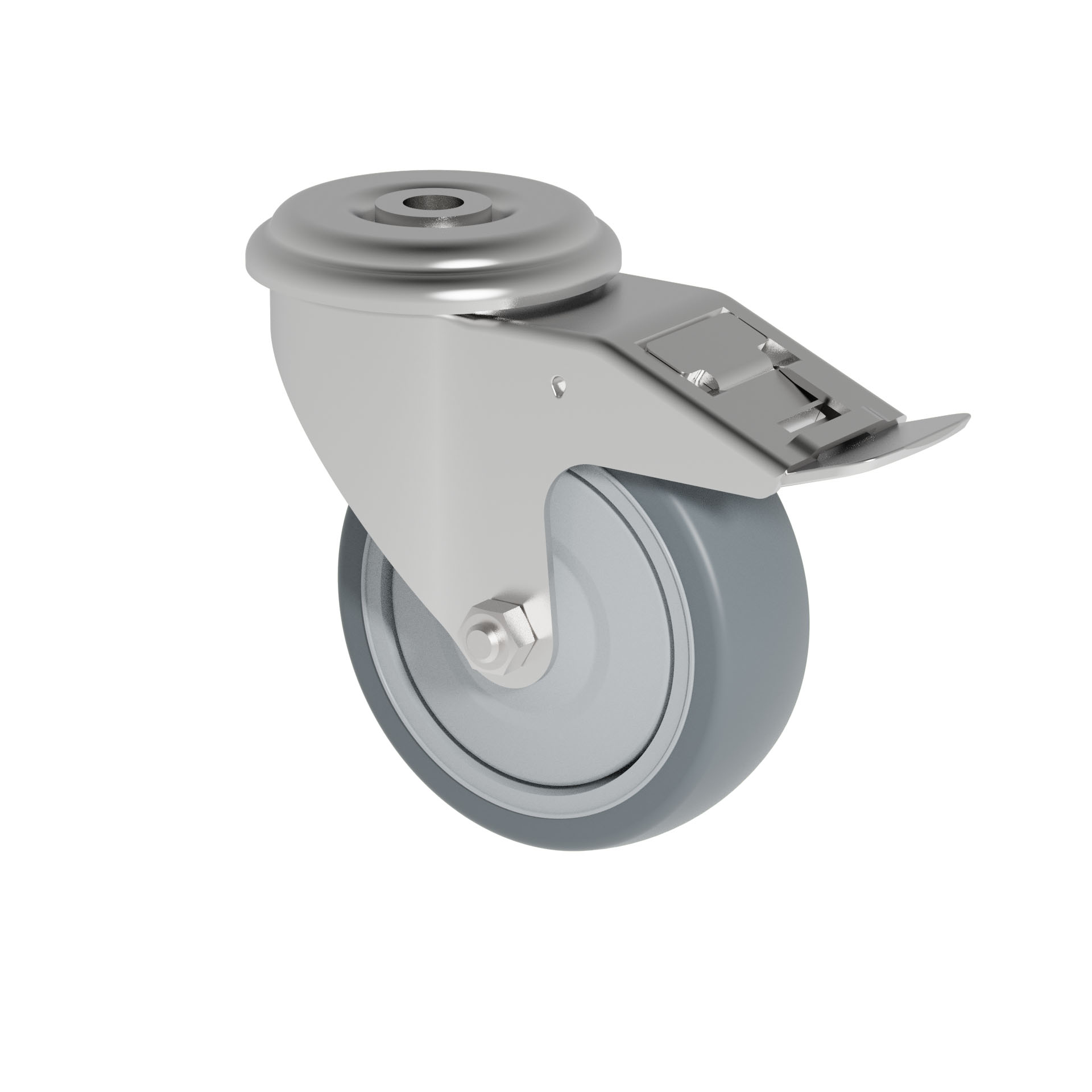 Swivel castor with total brake mounted behind, 100 mm - 125 mm, 150 kg