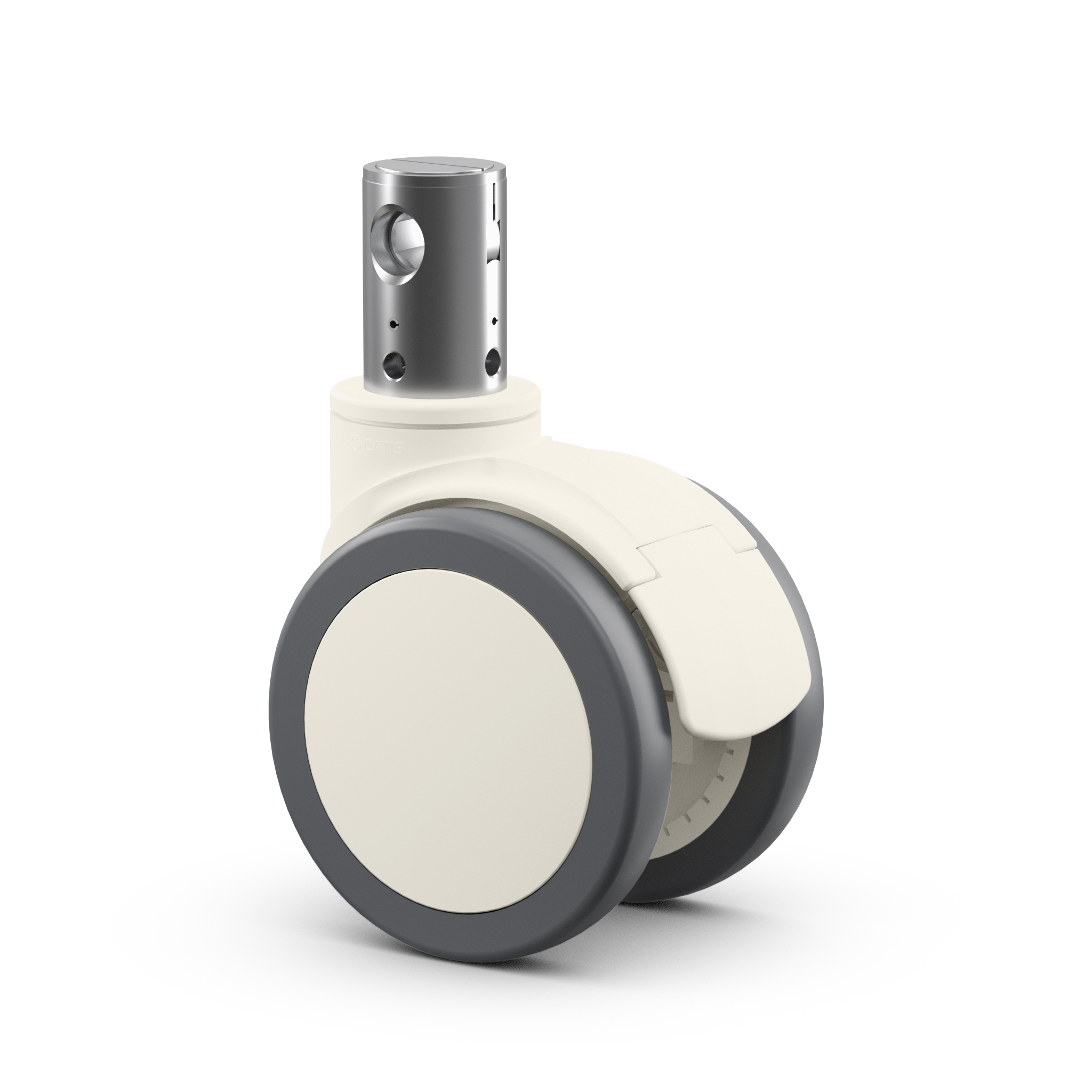 Swivel castor with central total brake, 75 mm - 100 mm, 90 kg - 100 kg