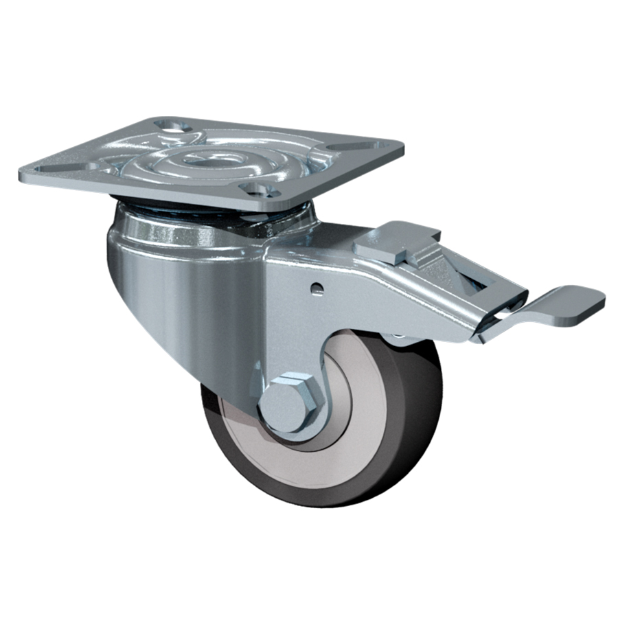 Swivel castor with total brake mounted behind, 50 mm - 100 mm, 75 kg