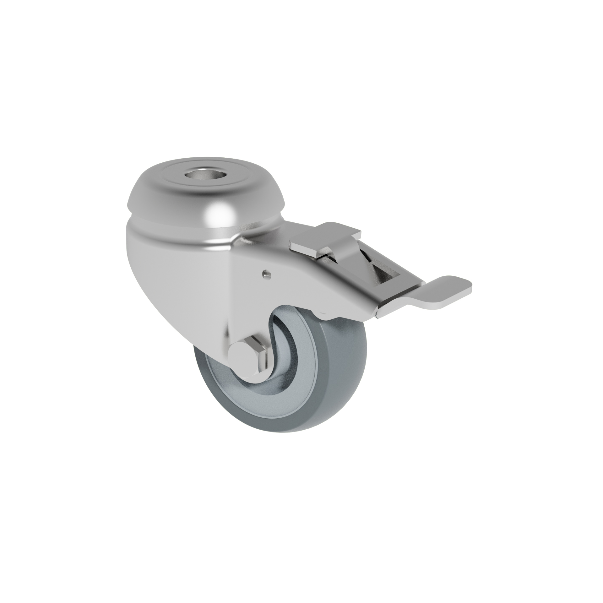 Swivel castor with total brake mounted behind, 50 mm - 100 mm, 50 kg - 75 kg