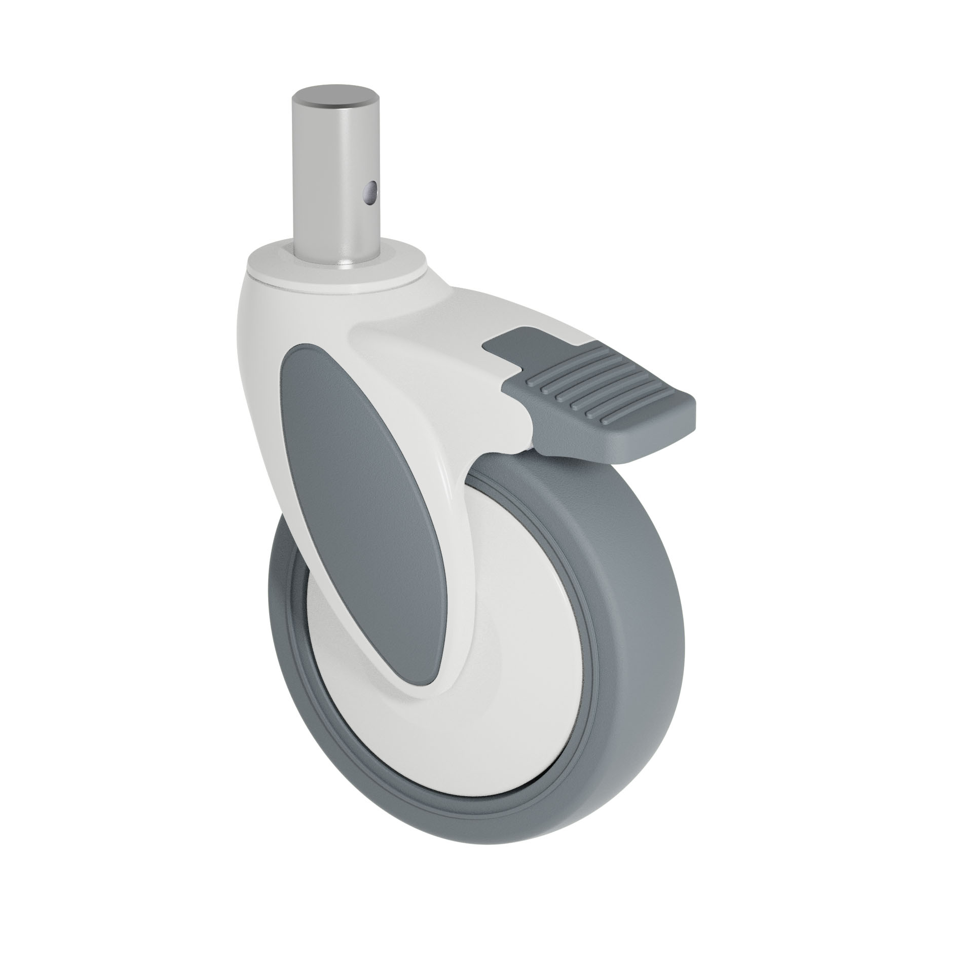 Swivel castor with total brake mounted behind, 125 mm, 100 kg
